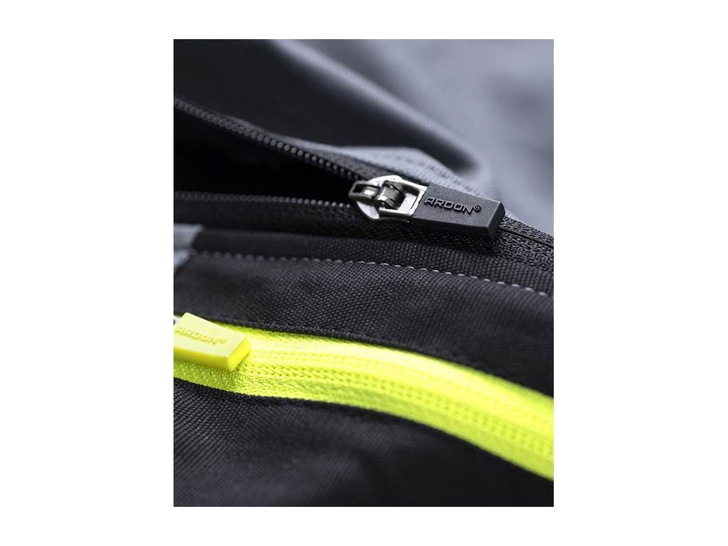 - zvýšenou viditelnost uživatele zajišťují reflexní pásky umístěné na předním i zadním dílu a hi-vis doplňky
