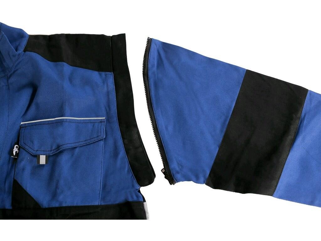 Pánská montérková blůza - zkrácená varianta na výšku 170-176 cm. Odepínací rukávy s pružnou manžetou, kryté zapínání na zip a suché zipy, náprsní kapsy s klopami, skrytá náprsní kapsa na zip, jednoduché boční kapsy, spodní část na bocích do gumy, reflexní doplňky. Doporučené použití: stavebnictví, lehký průmysl, logistika, skladová manipulace, autoservisy, údržba, montáže, zemědělství, zahrada, hobby.Doplňkové parametry