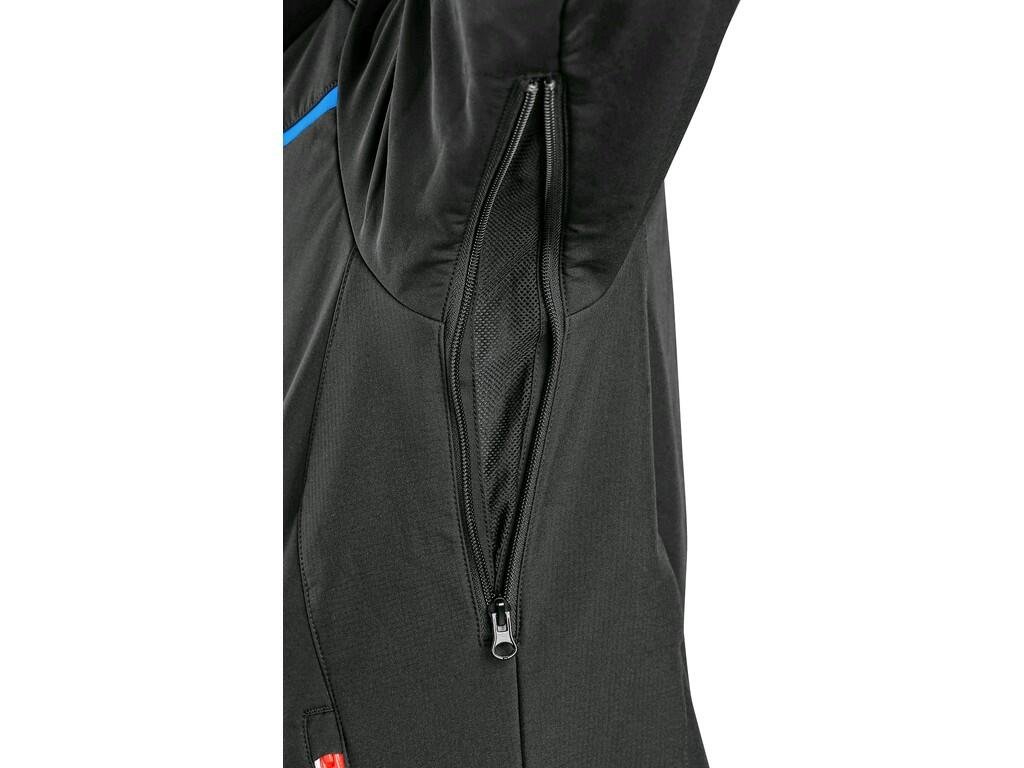 Pánská softshellová bunda s odepínací kapucí, odolná proti vodě a větru, zapínaní na zip, větrání v podpaží, náprsní kapsa na zip, boční kapsy na zip, vnitřní manžety v rukávech, stahování v dolním okraji, reflexní doplňky, TPU membrána. Odolnost materiálu proti průniku vody 8 000 mm mimo oblast švů, paropropustnost 3 000 g/m2/24h.Doplňkové parametry