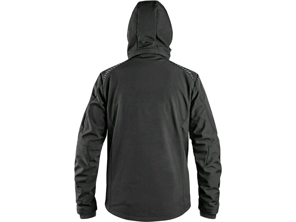 Pánská softshellová bunda s odepínací kapucí, odolná proti vodě a větru, zapínaní na zip, větrání v podpaží, náprsní kapsa na zip, boční kapsy na zip, vnitřní manžety v rukávech, stahování v dolním okraji, reflexní doplňky, TPU membrána. Odolnost materiálu proti průniku vody 8 000 mm mimo oblast švů, paropropustnost 3 000 g/m2/24h.Doplňkové parametry