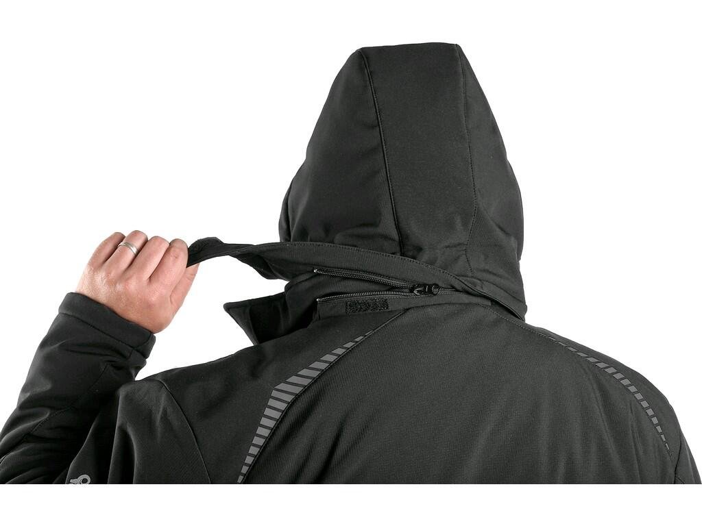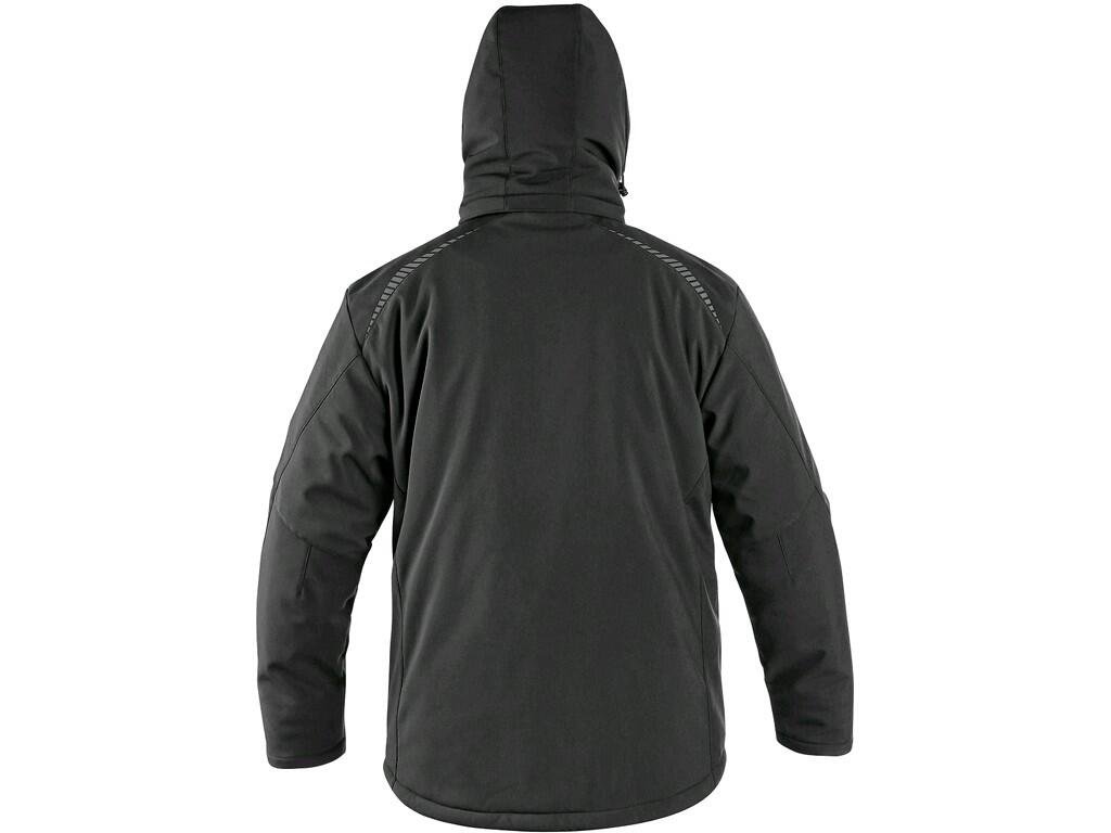 Pánská zateplená softshellová bunda s odepínací kapucí, odolná proti vodě a větru, zapínaní na zip, větrání v podpaží, náprsní kapsy na zip, v pravé kapse odnímatelné pouzdro na ID kartu, boční kapsy na zip, vnitřní kapsy, vnitřní manžety v rukávech, stahování v dolním okraji, reflexní doplňky, TPU membrána, vnitřní otvor na zip pro aplikaci výšivky. Odolnost materiálu proti průniku vody 8 000 mm mimo oblast švů, paropropustnost 3 000 g/m2/24h.Doplňkové parametry