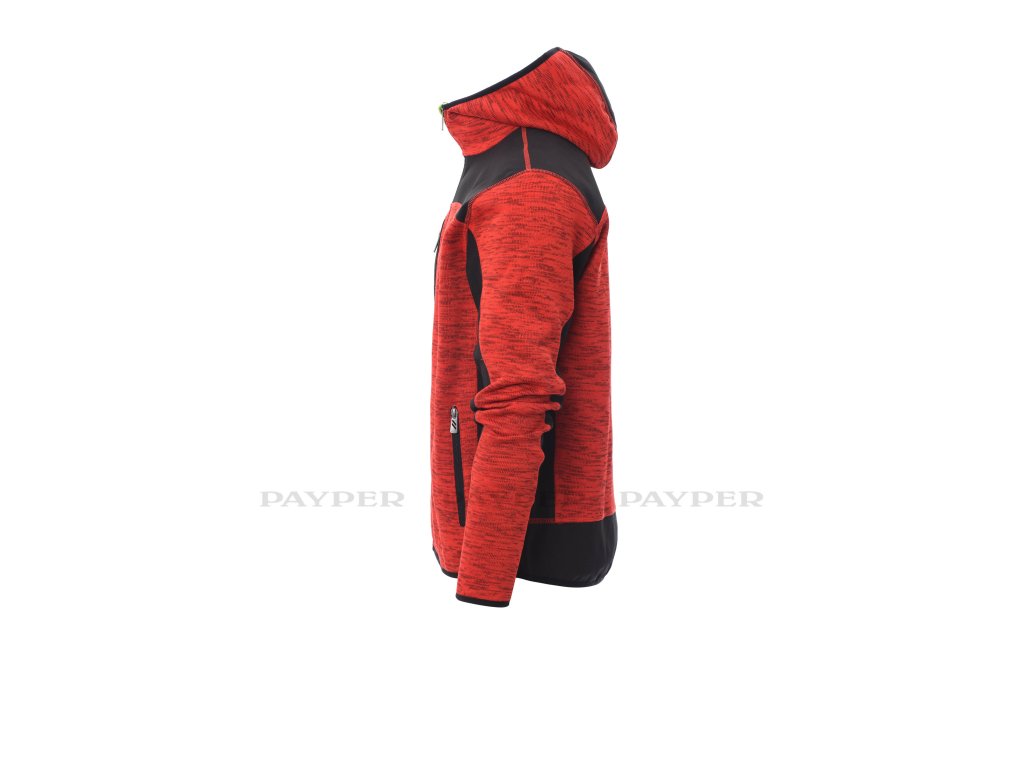 postranní kapsy na zip, jedna kapsa na hrudi. Úplet s vsadkami z