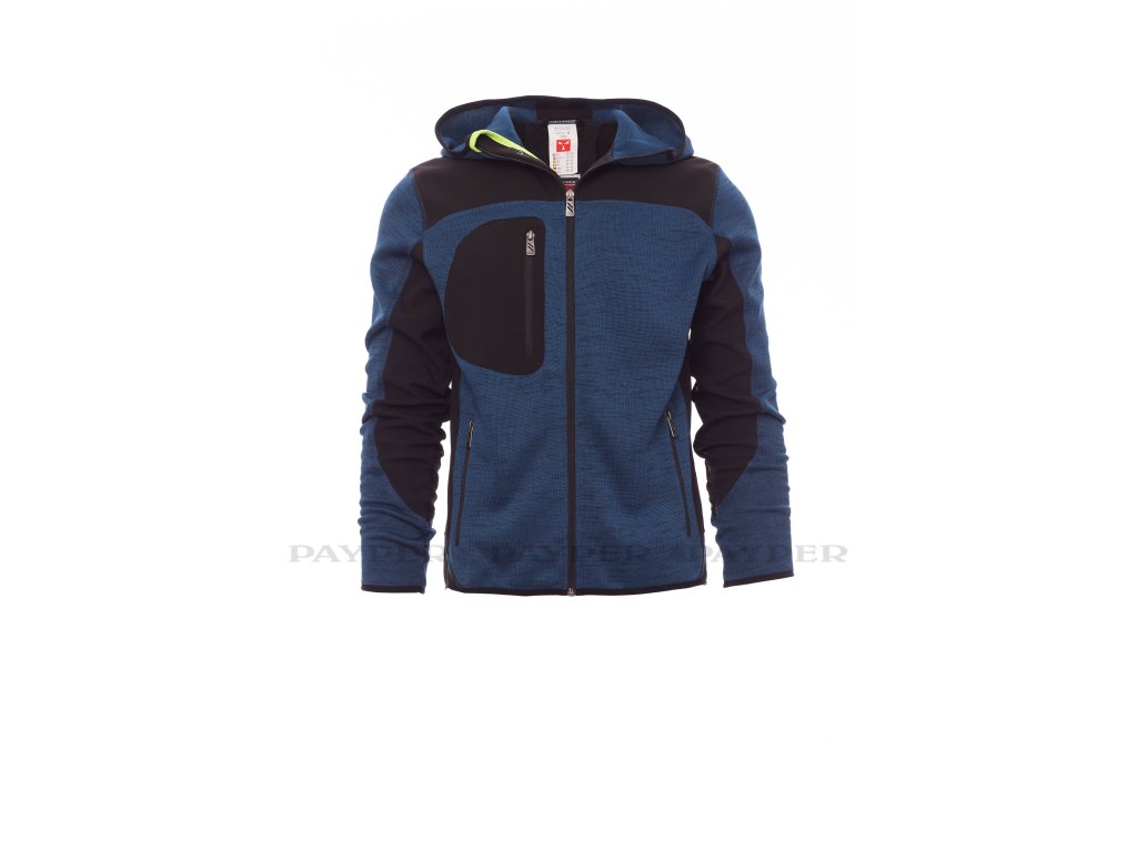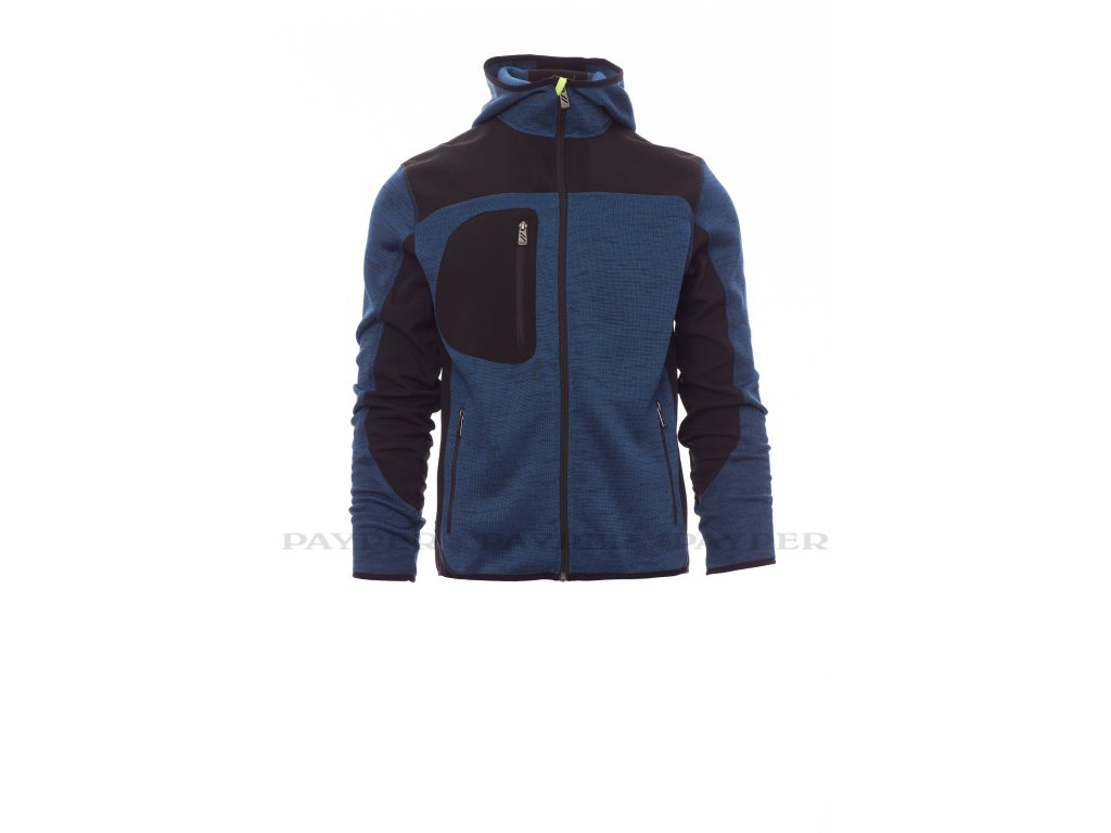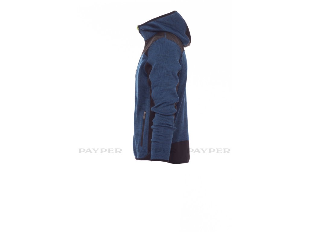postranní kapsy na zip, jedna kapsa na hrudi. Úplet s vsadkami z