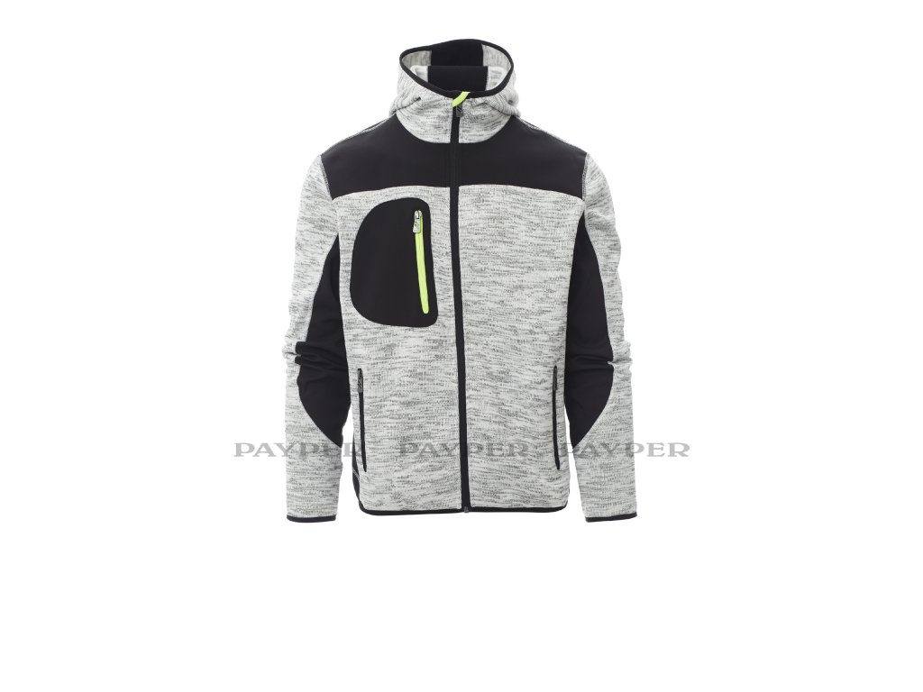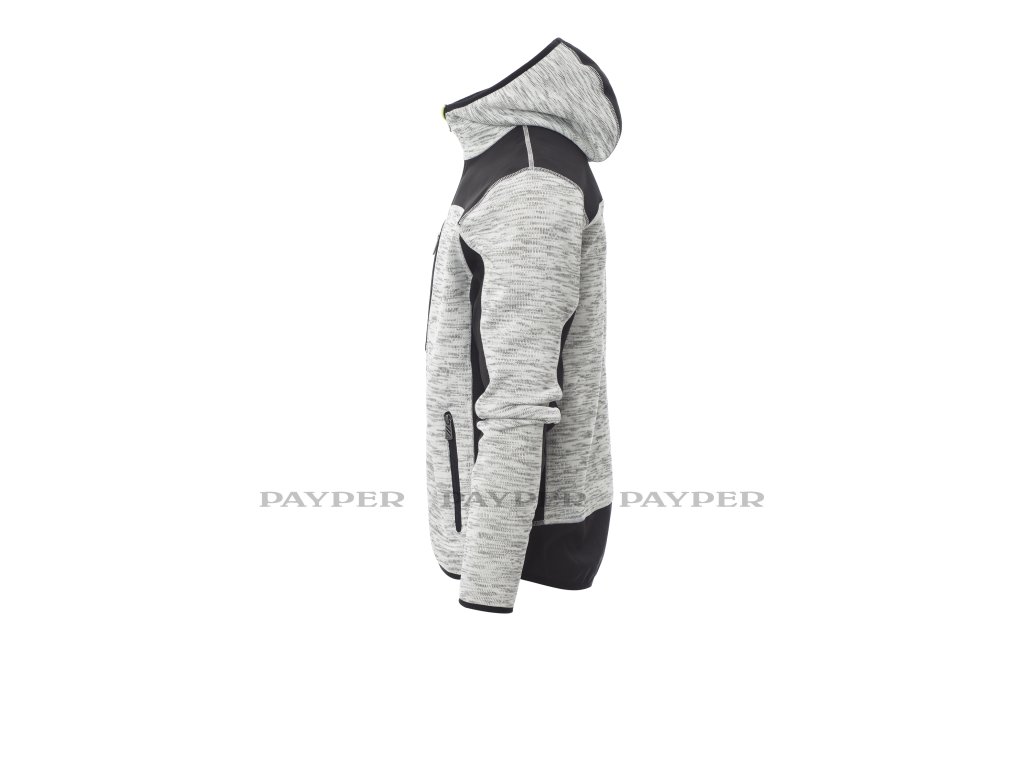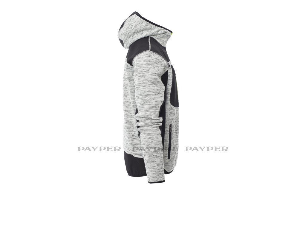 postranní kapsy na zip, jedna kapsa na hrudi. Úplet s vsadkami z