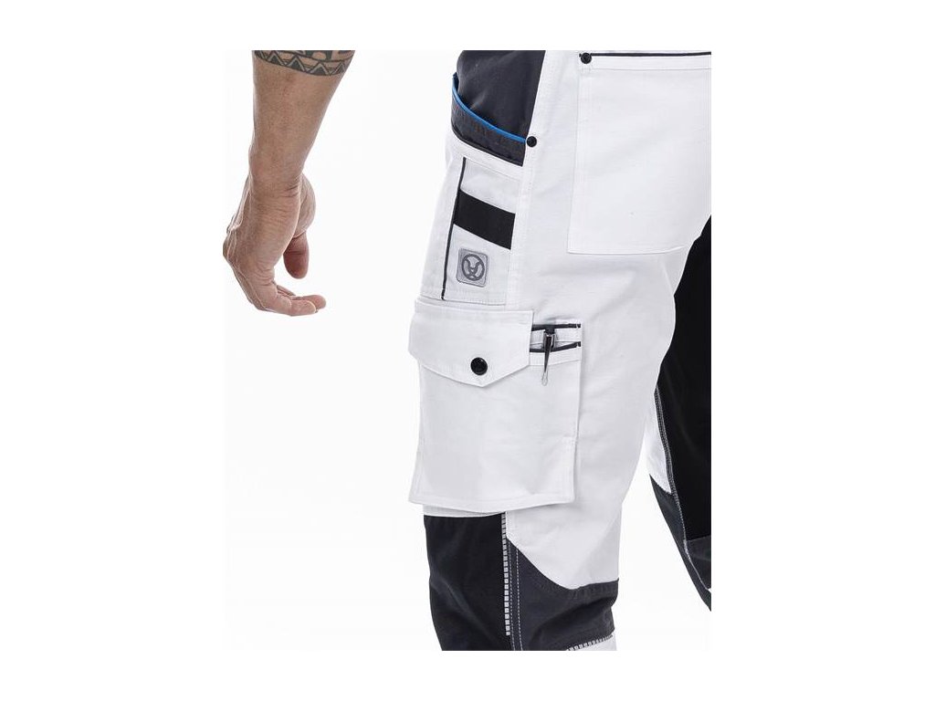 - kalhoty jsou vybaveny D kroužkem na karabinu, 2 hlubokými průhmatovými kapsami zpevněnými materiálem Oxford, 1 přední zipovou kapsou, 1 přední nářaďovou kapsou s širokým poutkem