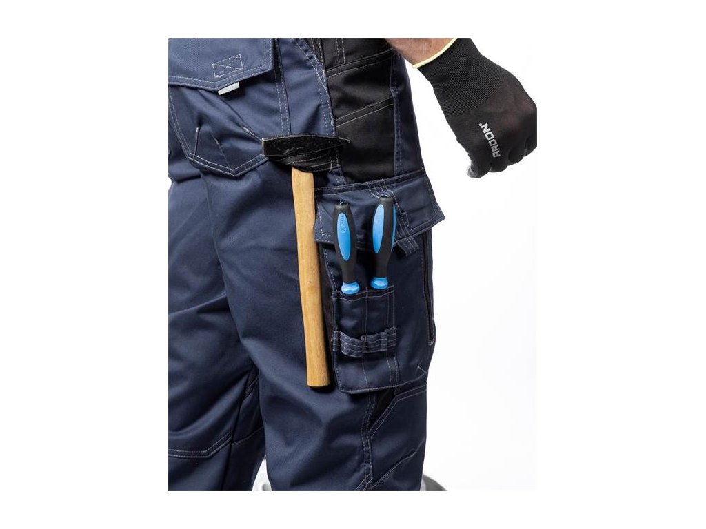 - kapsy na šroubovák, poutka na tužky, 2 kapsy na skládací metr integrované do lampasu na levé i pravé straně