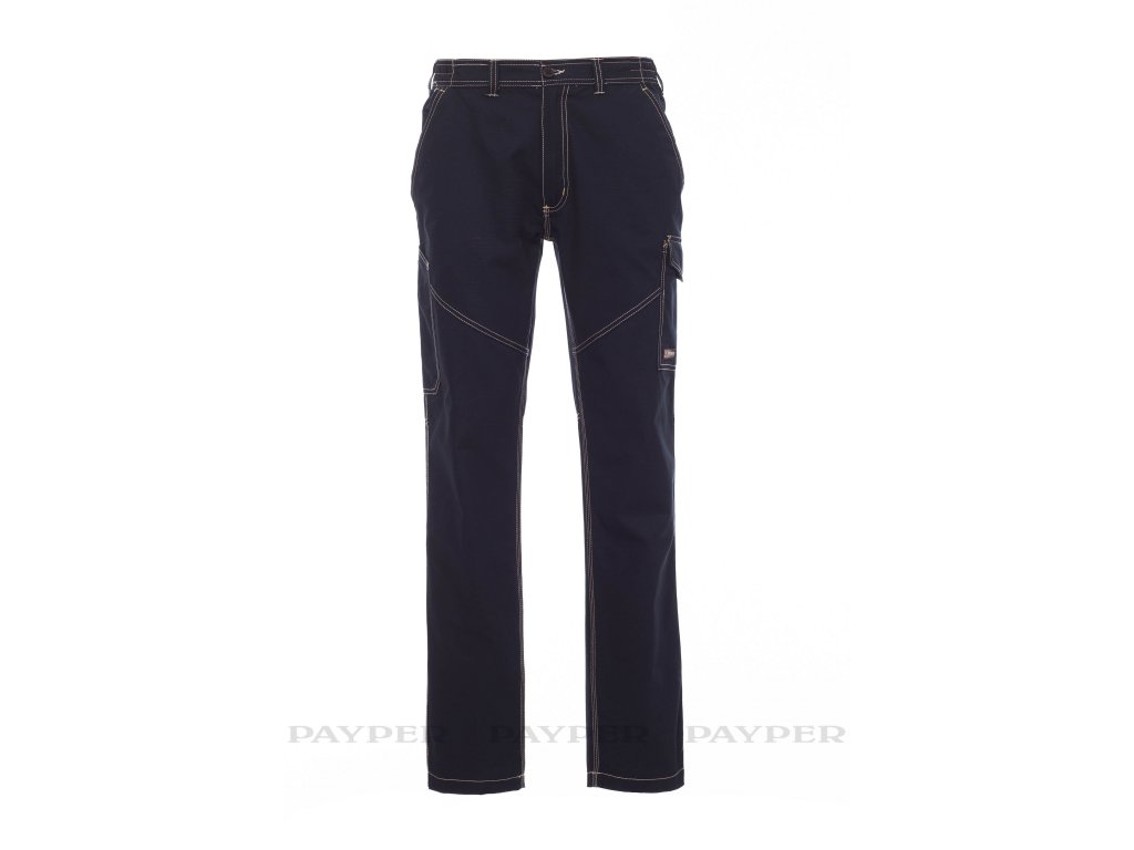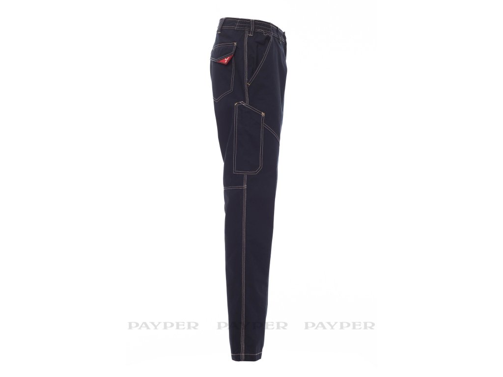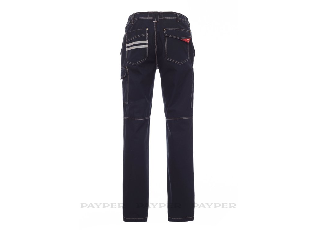 Unisexové kalhoty, letní, elastické pásky na bocích a poutka v pase, zapínání na plastový zip a knoflík, dvě přední kapsy klasického střihu, jedna postranní kapsa LOCK SYSTEM, jedna kapsa na svinovací metr, dvě zadní kapsy, z nichž jedna otevřená a druhá s klopou na suchý zip, kontrastní vsadky a prošití, reflexní pruhy na zadní kapse, trojí prošití. Druk pro bílou barvu.