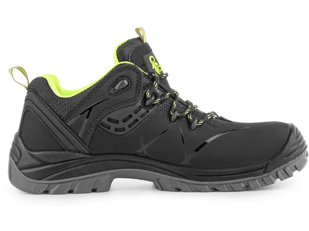 Bezpečnostní polobotka, kožená, s plastovou špicí a planžetou Dyna-Flex®, reflexní doplňky. Materiál: svršek z 1,6 - 1,8 mm štípenkové nubukové kůže (z jednoho dílu), vnější TPU ochrana paty, bez kovových součástí, podšívka z prodyšné oděru odolné textilie, podešev: PU-PU olejivzdorná, antistatická, protiskluzová, odolná proti propichu.Doplňkové parametry