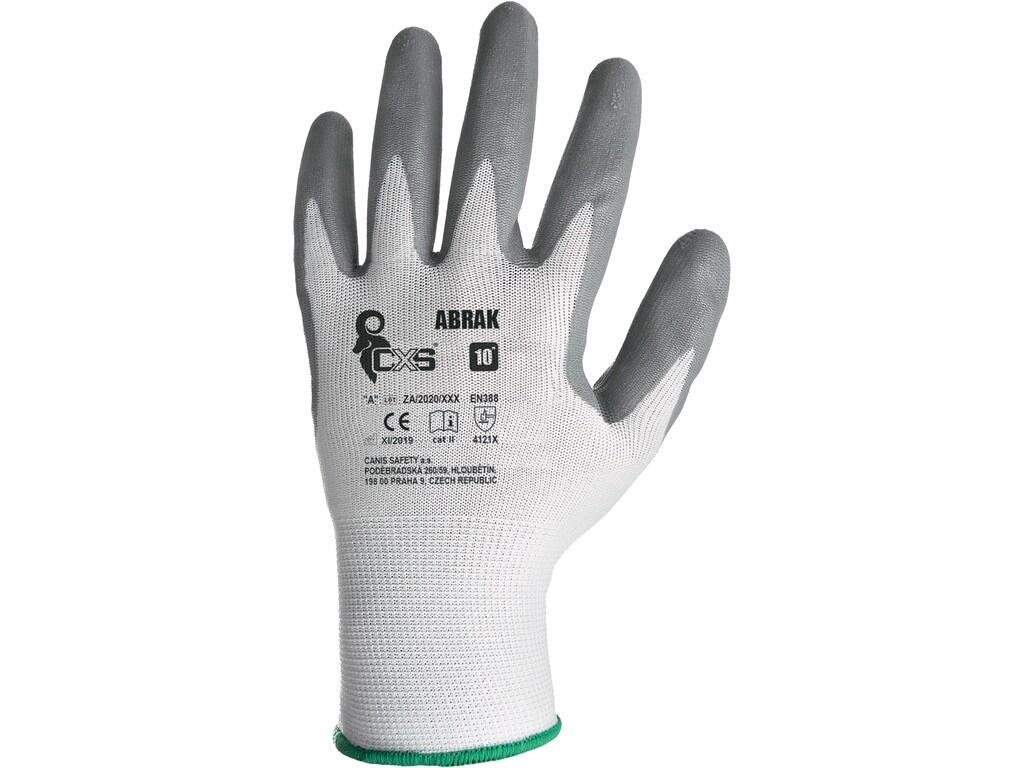 Rukavice CXS ABRAK, máčené v nitrilu, bílo-šedé, blistr, vel. 06