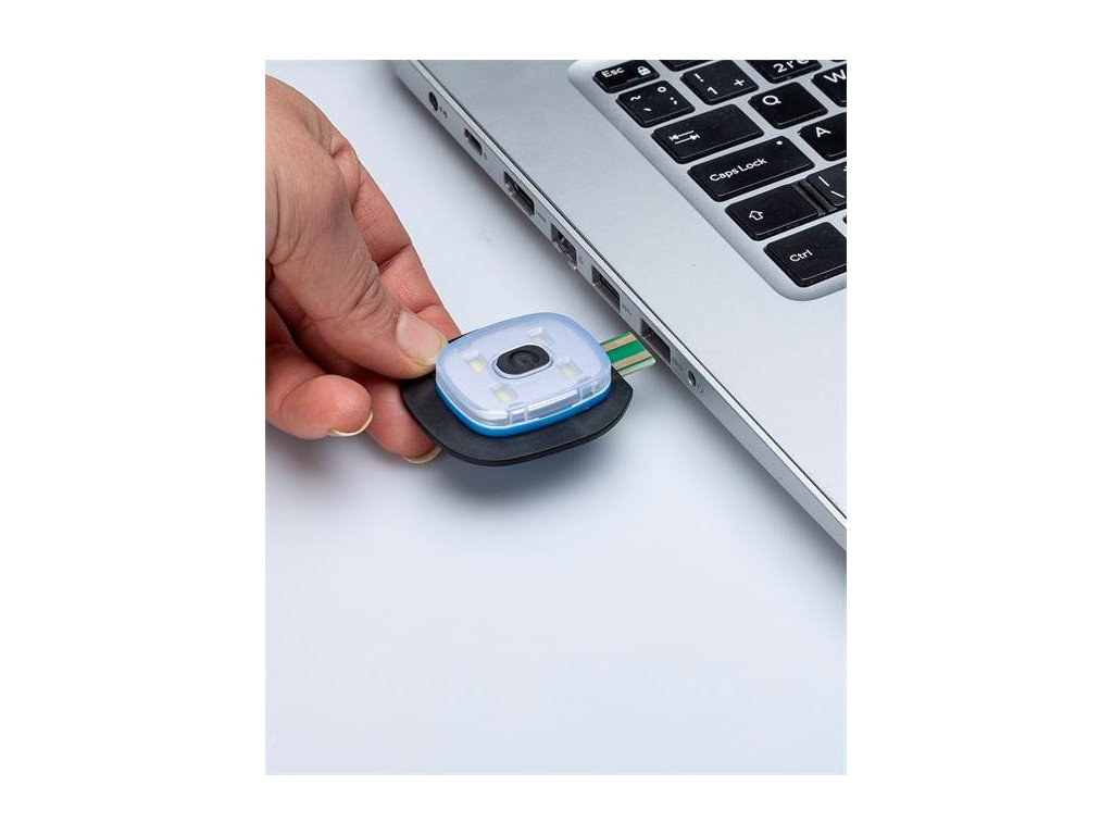 - dobíjení přes USB konektor (světlo se jednoduše vyjme z čepice a vloží se do USB portu v počítači)