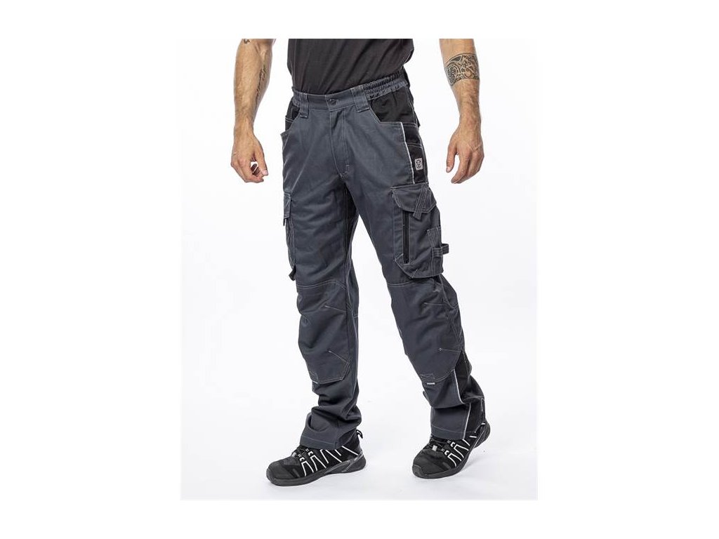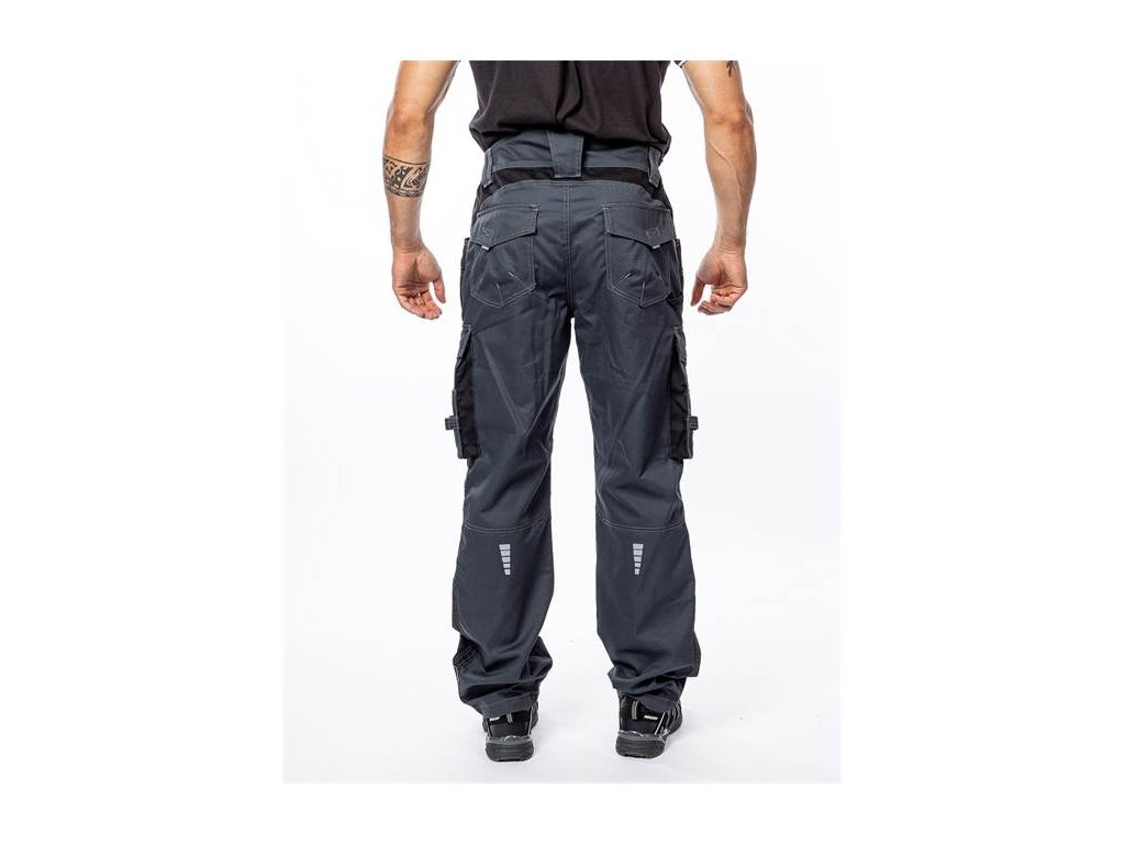 - 1 zipová kapsa na mobil, kapsy na šroubovák, poutka na tužky, 2 kapsy na skládací metr integrované do lampasu na levé i pravé straně